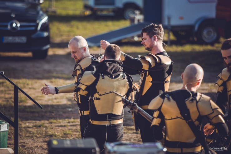 It’s fascinating to see that five people who arrived at the event in the afternoon relaxed and dressed in band shirts can change so completely! The uniform black basic outfits in combination with the really cool looking armor and the partially used make-up makes the five band members look entirely different.