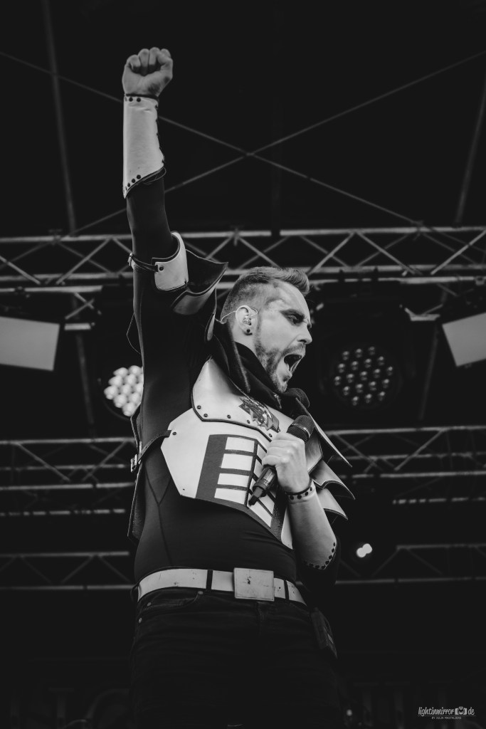 Dirk: Wir werden die Kostüme beibehalten, haben aber schon ein Update geplant. Die nächste Stufe der Rüstungen kommt! Wir sind eine Gimmick-Band und das bleibt auch so!