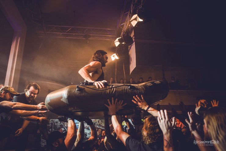 If that wasn’t enough for you, you could also enjoy a special kind of interlude: true to the motto „Crowdsurfing, but different!“, an inflatable boat was released to the audience. The only occupant that evening? EQUILIBRIUM drummer Hati, who probably wanted to test his own seafaring skills. As you can always rely on Metal fans, he returned safely to the stage in one piece.