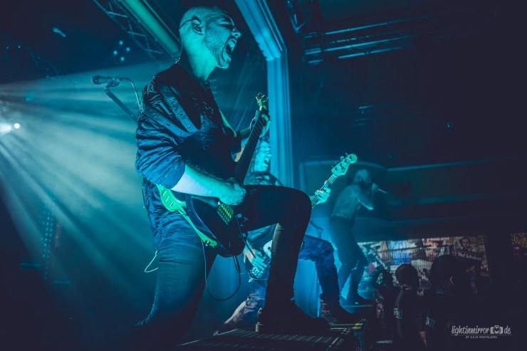 The evening was opened by the newcomers from DOMINUM. When I saw them on stage for the first time, I was immediately reminded of the Shakespeare quote „All the world’s a stage!“. Visually, it was definitely an eye-catcher, as singer Dr. Death had brought his “ Metal Zombies“ on stage with him. The appearance of the zombies can certainly be best described as „SLIPKNOT meets The Walking Dead“! Personally, I have no connection to zombie stories of any kind, but it was a damn good eye-catcher!