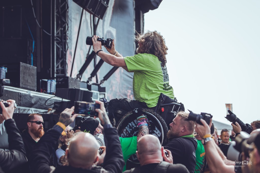 Aus meinem Gespräch mit Björn hat sich für mich eine zentrale Erkenntnis herauskristallisiert: Inklusion ist keine Frage von Können, sondern von Wollen. Wer Angebote schafft für Menschen, die sonst aus Umständen, für die sie nichts können, nicht am gesellschaftlichen Leben teilnehmen können, der wird keinerlei Problem damit haben, dass diese Angebote nicht wahrgenommen werden. Zur Wahrheit gehört aber auch, dass das auch alles finanziert werden muss. Zwar kann über (gesetzliche) Teilhabeleistungen ein Teil abgedeckt werden, jedoch sind dringend notwendige Infrastrukturteile, wie etwa der Duschcontainer, reine Eigenleistung des Festivals. Um die Inklusion auf dem Rockharz voranzubringen, hatte sich ja schon zu Corona-Zeiten das Projekt „Kultur für alle“ gegründet. Vielleicht habt ihr auf dem Infield die neongrünen Shirts mit dem QR-Code auf dem Rücken gesehen. Der Code führt zu einer Crowdfunding-Campagne, die genau diese finanziellen Probleme lösen soll. Auch die Gründung einer gemeinnützigen GmbH ist im Gespräch. Wenn auch ihr das Projekt unterstützen wollt, dann tragt doch einen Teil zum Crowdfunding bei. Wer weiß? Vielleicht ist nächstes Jahr „Metal, Beer and Best Friends“ dann wirklich für alle machbar!