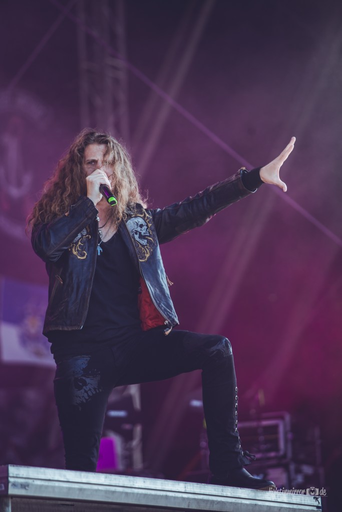 Highlight Nr.1 des Tages waren für mich auf jeden Fall DYNAZTY. Die Gruppe um Nils Molin ist einfach ein absoluter Ohrwurm-Garant! Von der Sekunde an, in der sie die Bühne betreten, steht das Stimmungsbarometer auf „Party“. Ich war absolut begeistert von ihrer Show und hätte mir das gut und gerne noch zwei Stunden länger anhören können! Besonders gefreut hat mich, dass sie Heartless Madness gespielt haben. Dieser Song ist ein absoluter Ohrwurm und mein Favorit aus ihrer Diskografie!