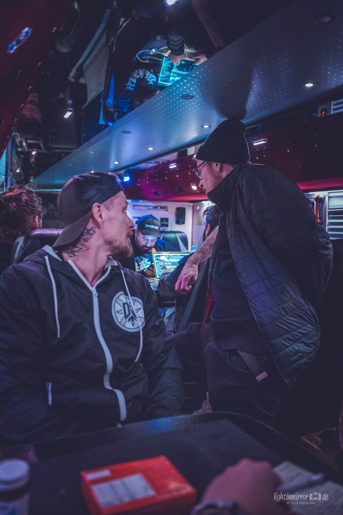 Speaking of trust: On the boys‘ initiative, we then took a look inside the tour bus. On a tour like this, a bus is home to far too many people in far too small a space. On sometimes long journeys across Europe, you spend a lot of time there with people you don’t (really) know and also somehow admire because they have achieved what you still want to achieve with your own music. In this respect, a tour bus is always a mini cosmos in which the musicians have to get along with each other. But as we were assured many times by everyone, everyone got on well together! (To be honest, I didn’t really want to believe that, but driver Andreas also said that it was the case and if anyone knows what harmony is, it’s someone who regularly drives artists all over the Europe).