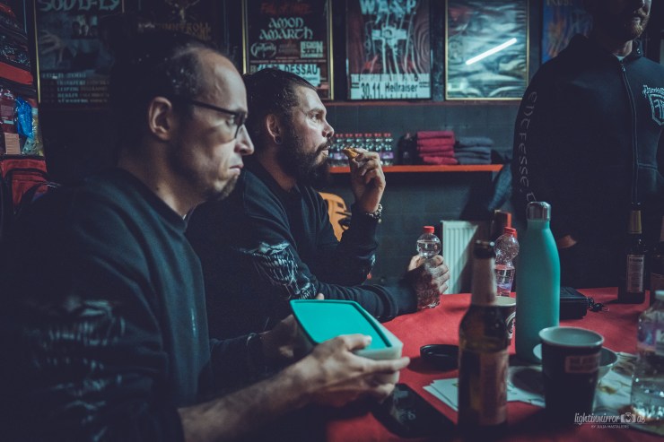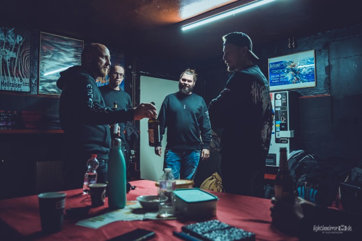After the soundcheck we went backstage again and, oh wonder, it was warm in the room for a change?!?!!? You rarely or never get that at Hellraiser! We also used the time to take some cool band pictures, as you could see at the beginning, but apart from Rocky we didn’t know anyone in the band and a bit of friendly sniffing around is a must! Besides Rocky on guitar, there was drummer Jakob, singer Timo and bassist Thomas. Apart from the genuine friendliness we experienced from the guys, I was particularly pleased that they were so open with us. It felt like there was nothing they didn’t give us an insight into and we are really grateful for that! It is absolutely not a matter of course that we are given this level of trust, especially as we really only got to know them there on site!