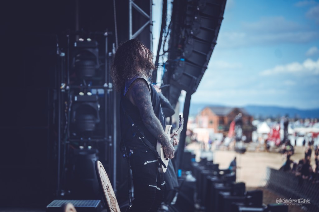 Und was soll ich sagen? Ich habe ja nun schon einige DELIVER THE GALAXY-Auftritte miterlebt, aber schon allein meine Perspektive hat es diesmal einfach zu etwas ganz Besonderem gemacht. Das Set begann, wie man auch erwarten durfte, mit dem Song Bury Your Gods, der ob seines fulminanten Auftaktes Sänger Matze die perfekte Gelegenheit zum eindrucksvollen Stürmen der Bühne bot. Leider hatten DELIVER THE GALAXY nur etwa 30min Spielzeit, sodass hier ordentlich Druck gemacht werden musste, um das Set auch pünktlich zur Vollendung zu bringen. Wer das letzte Album der Band kannte, der war hier mit Sicherheit textsicher und von der Bühne aus wirkte es so, als wären seeeeeehr viele Leute textsicher gewesen, was mich unheimlich für die Jungs gefreut hat. Insbesondere beim Song Live. Die. Repeat. hat das Publikum der Band ordentlich gezeigt, wie viel Bock es eigentlich hat! Kurzum: Besser hätte ein Einstand einer Band bei einem Festival dieser Größe nicht laufen können! DELIVER THE GALAXY waren am Donnerstag auf jeden Fall mein Headliner der Herzen!
